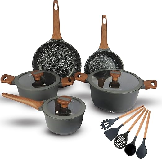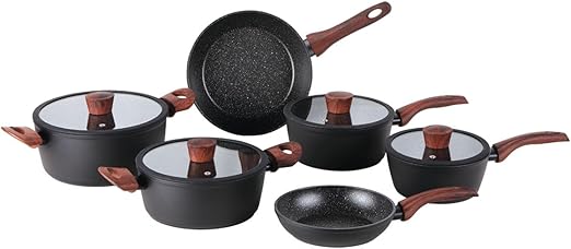 - Design moderno e acabamento sofisticado — Seu exterior em preto fosco com interior marmorizado traz elegância visual, enquanto as tampas flat em vidro temperado com borda de silicone permitem acompanhar o cozimento sem perder calor ou abrir a tampa.